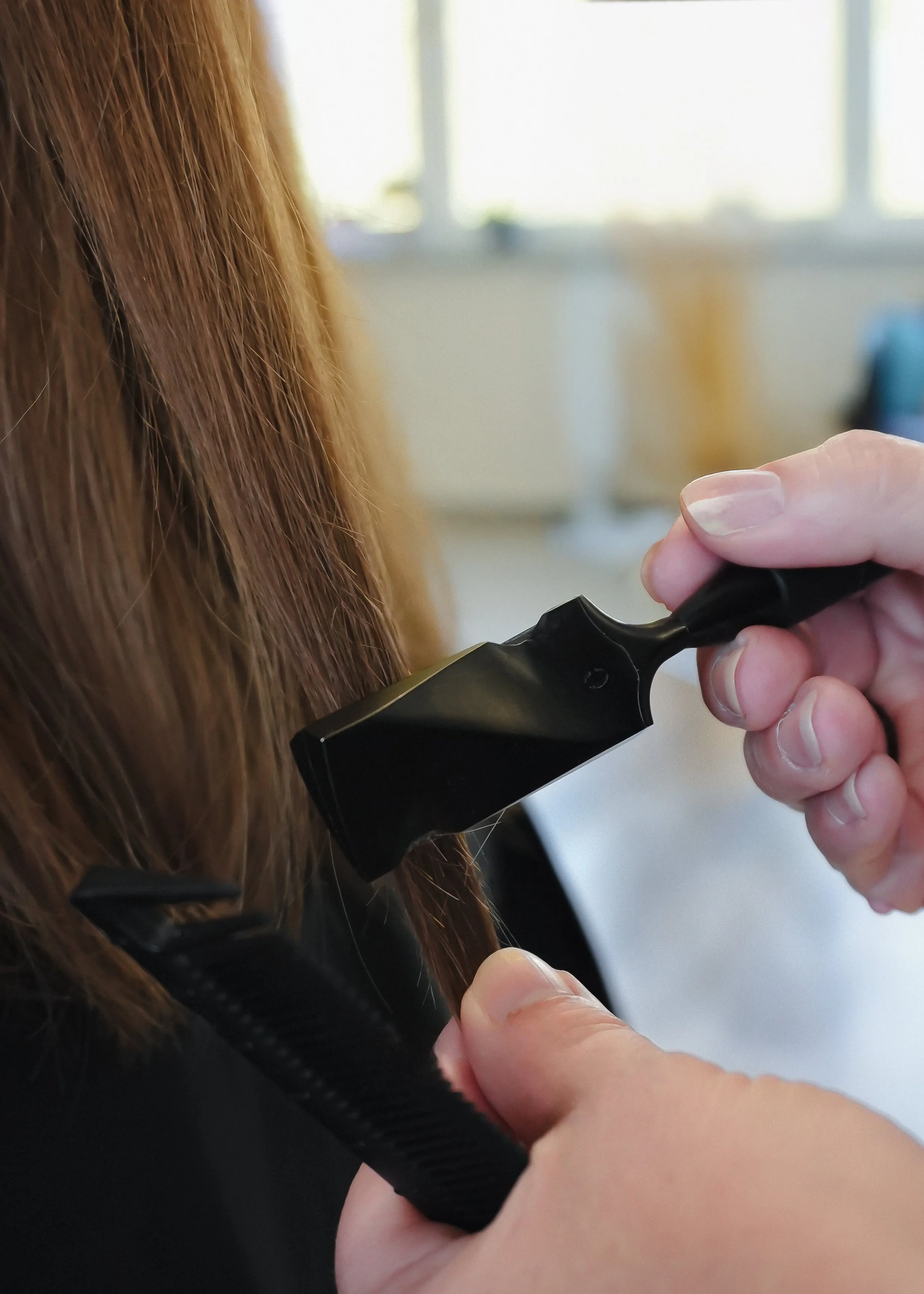 Der Grund dafür ist keine Kleinigkeit, sondern eine besondere Schneidetechnik, die nur wenige Friseure wirklich beherrschen. Der Calligraphy Cut ist eine zusätzliche Spezialisierung und verändert die Haarspitzen so, dass sie sich ganz anders verhalten als bei einem klassischen Schnitt. Genau deshalb fühlt sich dein Haar danach nicht nur gut an, sondern bleibt es auch.